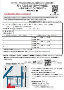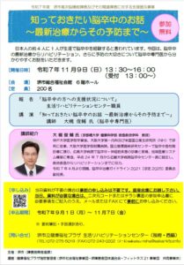 Newsお知らせ 2025.09.26 関係団体主催の研修会 【2025年11月9日(日)】令和7年度 堺市高次脳機能障害及びその関連障害に対する支援普及事業 知っておきたい脳卒中のお話 ~最新治療からその予防まで~ PDF 一覧に戻る