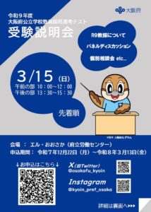 令和9年度 大阪府公立学校教員採用選考テスト 受験説明会のお知らせ